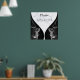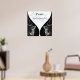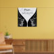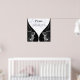 White marble a frame with a black abstract graphic and underexposed tulips to personalize guiding your guest to your guest book.