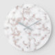 White Marble Carrara Rose Gold Glitter Texture Large Clock