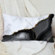 Elegant white marble and black agate gilded with faux gold glitter combine in this luxurious lumbar pillow.