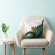 White Marble Gilded Emerald Green Agate Monogram Throw Pillow