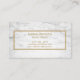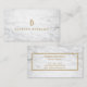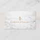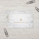 A white marble backdrop sets a beautiful tone on this designer business card template. Your initial and name or business name are elegantly styled on the front in matte gold for a monogrammed logo effect. © 1201AM CREATIVE
