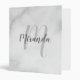 White Marble Modern Script Monogram and Name 3 Ring Binder