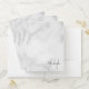 featuring personalized name in grey modern script font style and monogram in light grey modern script font style as background on white marble background.