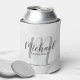 White Marble Modern Script Personalized Groomsmen Can Cooler