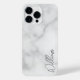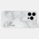 This design features personalized name in grey modern handwriting script font on white marble background.