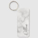 White Marble Modern Script Personalized Name Keychain