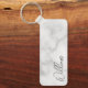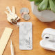 This design features personalized name in grey modern handwriting script font on white marble background.