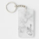 This design features personalized name in grey modern handwriting script font on white marble background.