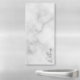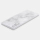 This design features personalized name in grey modern handwriting script font on white marble background.