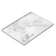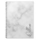This design features personalized name in grey modern handwriting script font on white marble background.