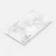 This design features personalized name in grey modern handwriting script font on white marble background.