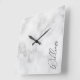 White Marble Modern Script Personalized Name Square Wall Clock