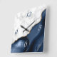 White Marble Navy Blue Agate Gold Glitter Square Wall Clock