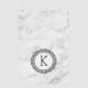 Trendy white faux marble with black ornate circle Mandela and custom monogram.