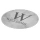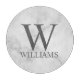 features personalized monogram and name in grey classic serif font style on white marble background.
