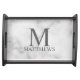 features personalized monogram and name in grey classic serif font style on white marble background.