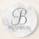 White Marble Personalized Script Monogram and Name Coaster