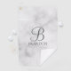 features personalized monogram in grey classic script font style and name in grey classic serif font style on white marble background.