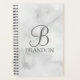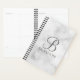 features personalized monogram in grey classic script font style and name in grey classic serif font style on white marble background.