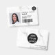 A modern, and professional elegant white marble nurse photo id badge with logo and barcode horizontal layout.