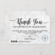 The customizable White Marble Script Customer Thank You Card is a stylish and elegant way to show appreciation to your customers. The card features a white marble background with a beautiful script font that reads "Thank You" in gold foil. You can personalize the card by adding your own message, logo, and brand colors. The high-quality card is printed on thick cardstock and comes with a matching envelope. This card is perfect for businesses looking to create a memorable and personalized experience for their customers.