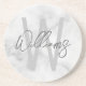 This design features personalized name in grey modern handwriting script font style and monogram in light grey modern sans serif font style as background, on white marble background.