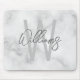 White Marble Script Personalized Monogram and Name Mouse Pad