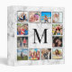 Create your own personalized 12 photo collage binder with your custom images and monogram on a stylish elegant white marble background.
