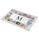 Create your own personalized 12 photo collage cloth placemat with your custom images and monogram on a stylish elegant white marble background.