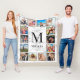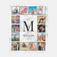 Create your own personalized 12 photo collage fleece blanket with your custom images, monogram and name on a stylish elegant white marble background.