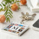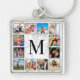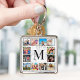 Create your own personalized 12 photo collage keychain with your custom images and monogram on a stylish elegant white marble background.