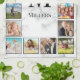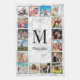 Create your own personalized 16 photo collage kitchen towel with your custom images, monogram and name on a stylish elegant white marble background.