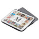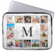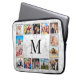 Create your own personalized 14 photo collage laptop sleeve with your custom images and monogram on a stylish elegant white marble background.