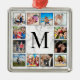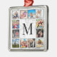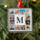 Create your own personalized 12 photo collage metal ornament with your custom images and monogram on a stylish elegant white marble background.