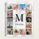 Create your own personalized 12 photo collage planner with your custom images, monogram and name on a stylish elegant white marble background.