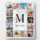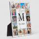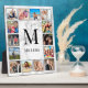 Create your own personalized 12 photo collage plaque with your custom images, monogram and name on a stylish elegant white marble background.