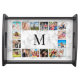 Create your own personalized 16 photo collage serving tray with your custom images and monogram on a stylish elegant white marble background.