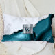 Elegant white marble and teal agate trimmed with faux silver glitter combine in this luxurious lumbar pillow. Personalize it with your initial in teal serif font on a silver faux brushed metal square.