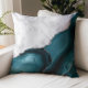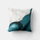 White Marble Teal Agate Silver Throw Pillow