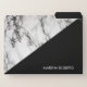 Modern white marble stone texture with black grain and triangle. Optional monogram