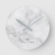 White Marble with Personalized Monogram and Name Round Clock