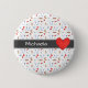 Cute personalize button with a background of a medical equipment. From adhesive bandages, pills, bottles to blue stethoscopes. In the middle front there is a wide gray line with the white text that you can personalize. On the right side of the text, there is an illustrated red heart. Customize further if you need to change the text font or size. You can delete the heart if necessary. Illustrated and designed by Patricia Alvarez.