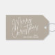 Merry Christmas in white fancy script and your names in chic lettering, these tan gift tags or party favor tags are stylish for any Christmas holiday occasion. MORE items in our store.