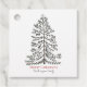 This minimalist and elegant white "Merry Christmas" gift tag feature a detailed rendition of a festive winter tree, hand-drawn in black ink on an elegant white background. The back features a pattern of stars. Personalize with your own holiday greeting and family name by simply clicking on "Personalize this template" on the Product Page.