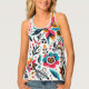 Women's All-Over Print Racerback Tank Top, White Piping, S