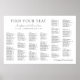 With its pristine white color, this chart brings a sense of purity and harmony to your wedding venue. The alphabetical arrangement of names ensures that guests can easily find their assigned seats, making the seating process seamless and stress-free.