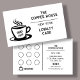 Customizable white minimalist loyalty card for cafes and coffee shops, featuring a freshly brewed cup of coffee with " Thanks A'Latte ", business details with an area to stamp the card with every purchase.