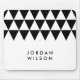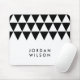 Minimalist white mouse pad featuring a modern black triangle pattern that you can personalize with your name.