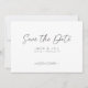 White Minimalist Save the Date announcement with a personalized modern font and elegant calligraphy.