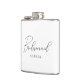 Modern elegant script typography bridesmaid flask with background design. It's perfect for bachelorette and bridal party gifts.